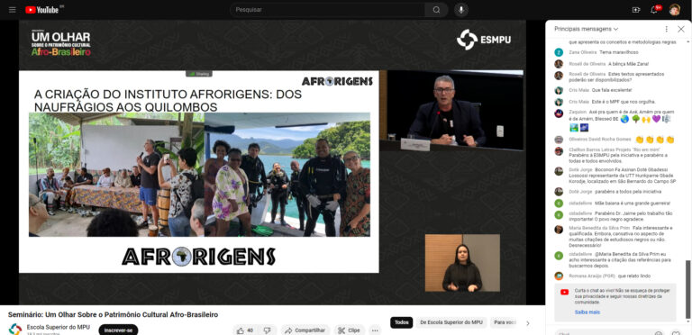 The seminar is a joint initiative of the AfrOrigens Institute, the Passados Presentes Project, the Quilombo Santa Rita do Bracuí, and the National Archives, in partnership with the Slave Wrecks Project, an international network coordinated by the Smithsonian Institution National Museum of African American History and Culture and George Washington University, which studies slave shipwrecks around the world.